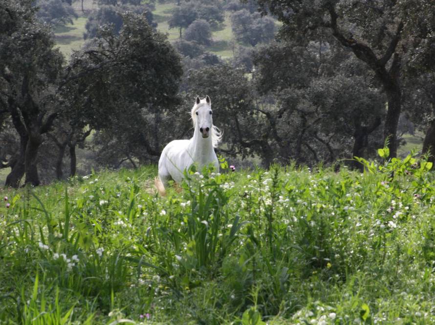 La finca «Los Especieros» cuenta con unas 350 Has. de superficie y constituye una amplia dehesa, en la que la majestuosa encina deja espacio al olivar, creando un hábitat ecológico inigualable. Este entorno natural es perfecto para el desarrollo y cuidado del caballo PRE. La armonía entre la naturaleza y la actividad ganadera fomenta una crianza de excelencia.